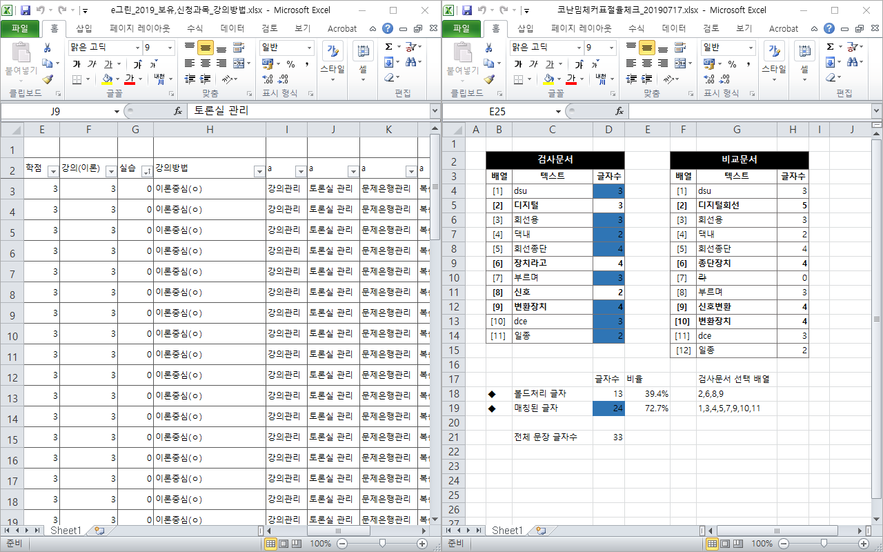 - 엑셀 프로그램을 두개 열어서 파일 불러 오기 하면 분리해서 엑셀을 띄울수 있음